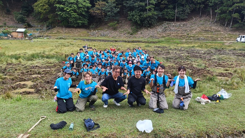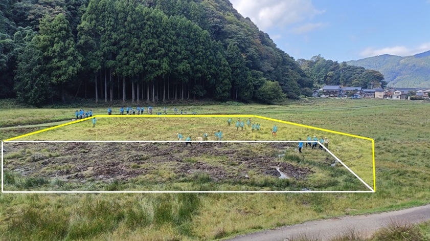 2025年10月11日、12日の2日間、豊岡市田結区にある大規模湿地(以下 田結湿地)で、IVUSA(NPO法人国際ボランティア学生協会)大阪茨木クラブによるコウノトリの生息地となる湿地保全活動が、5月31日、6月29日に続いて行われました。