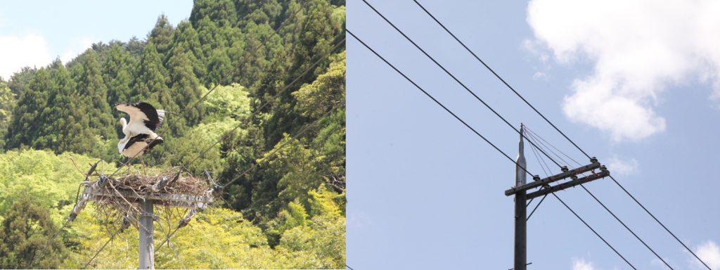 昨年だけで豊岡市役所には電柱への造巣報告が25件も寄せられ、市の職員が確認後、電力会社が専門機関と連携して巣を撤去しています。