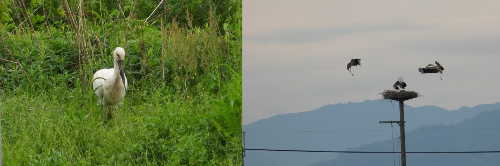 豊岡市内には、まだ繁殖に利用されていない人工巣塔も多く残っています。ペアの分散がうまく進み、争いが少なくなることを願っています。